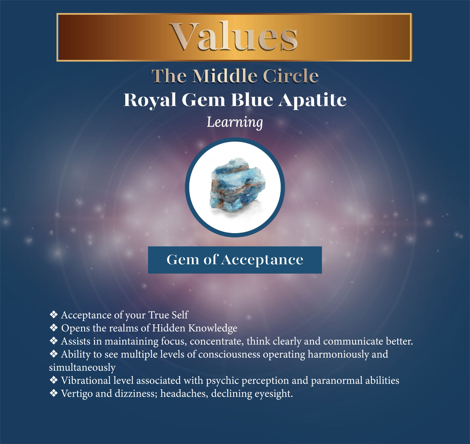 Today you chose Royal Gem Blue Apatite (specific to # 1-6).Â